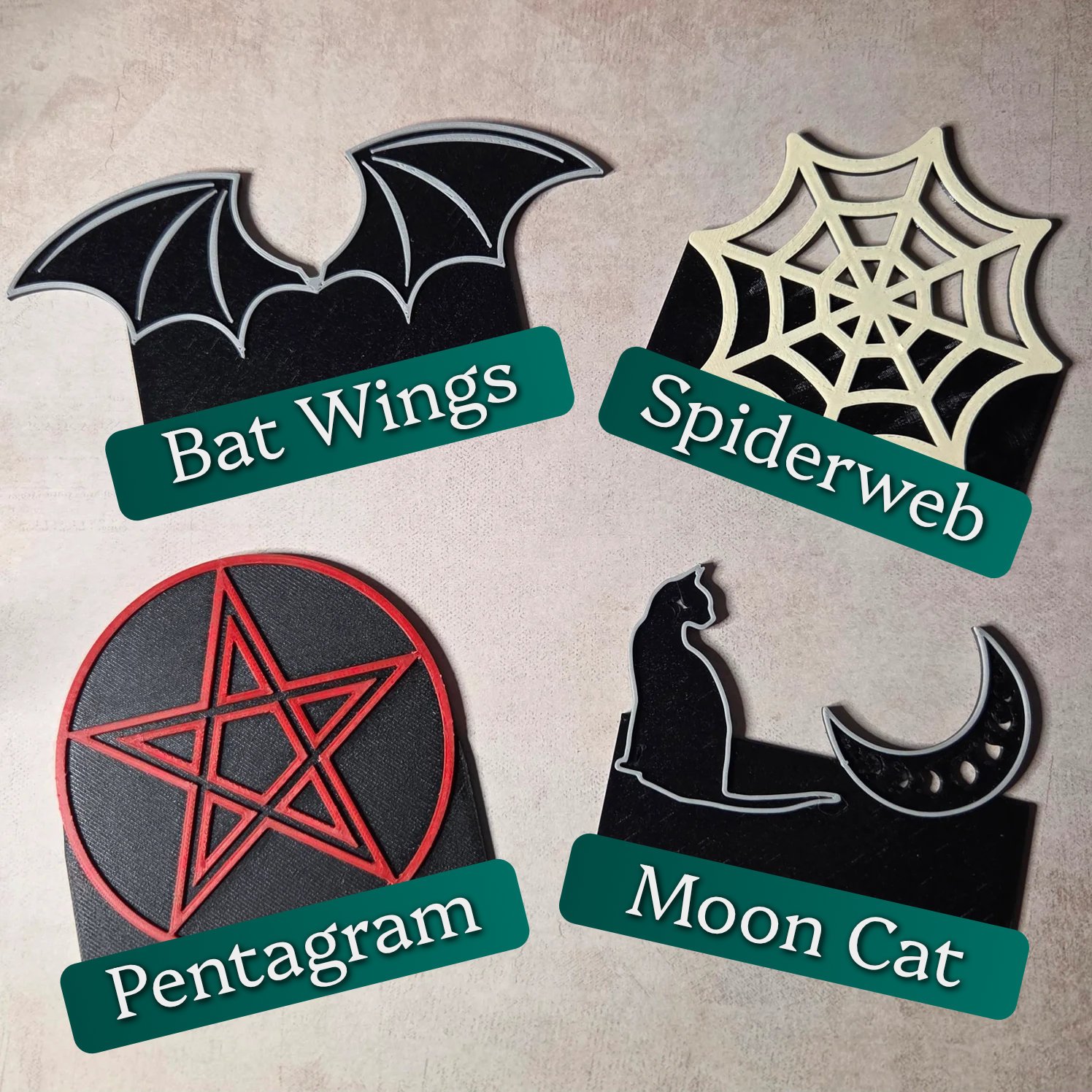 | Backplate | Bat Wings, Moon Cat, Pentagram, Spider Web |